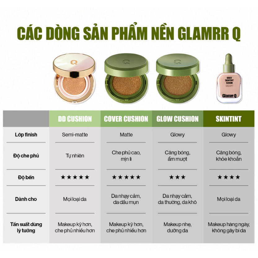 Kem Nền Serum Căng Bóng 3in1 Glamrr Q Daily SkinTint Serum Vegan Foundation SPF50+/PA++++ 30ml