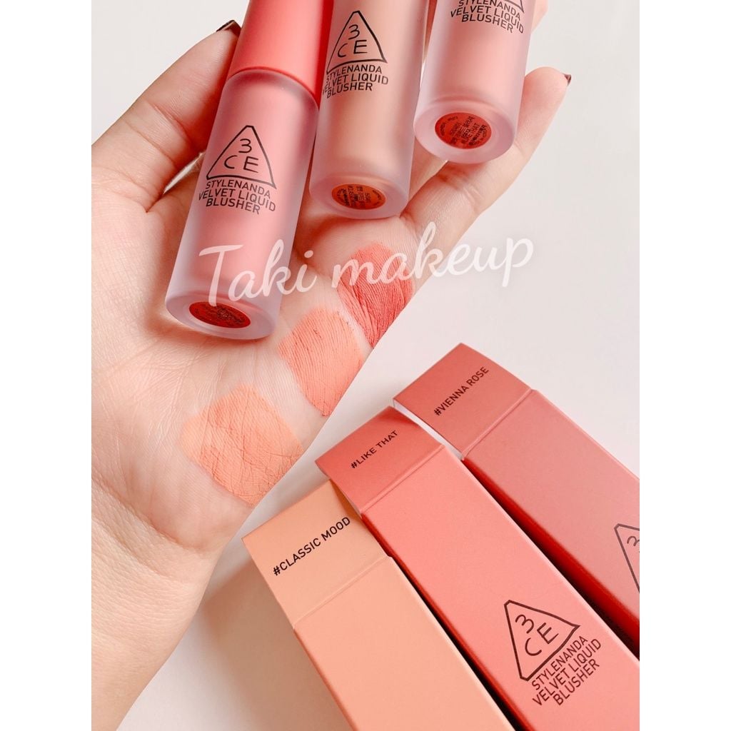 Má Hồng Kem dạng lì 3CE Velvet Liquid Blusher 3.4g [Vienna Rose- Classic Mood- Like That]