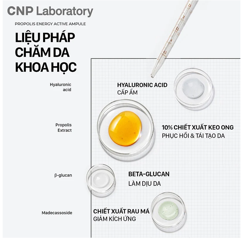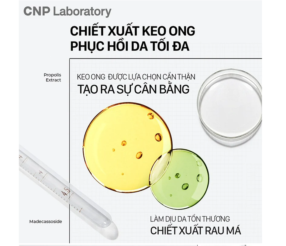 – Nước thần keo ong CNP Laboratory Treatment Ampule Essence này ngoài việc cấp ẩm cho da còn có khả năng ức chế sự phát triển và tiêu diệt nhiều loại vi khuẩn có hại trên bề mặt da, keo ong đặc biệt có lợi cho những người bị mụn trứng cá, đặc biệt là những trường hợp da tổn thương do môi trường ô nhiễm.