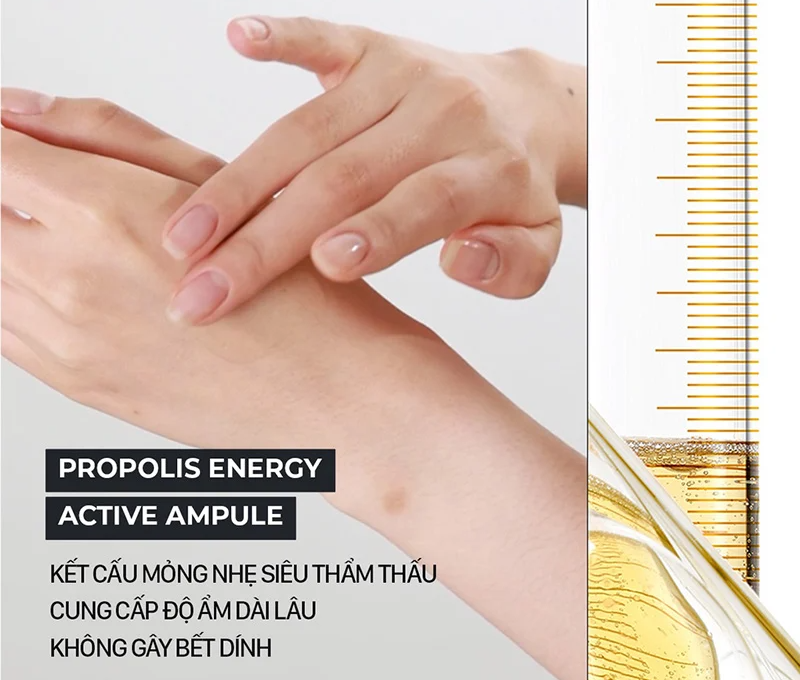 Với thành phần chiết xuất keo ong lên đến 10% giúp tăng cường hàng rào bảo vệ da tự nhiên và giúp hồi sinh làn da, đạt được sự trẻ trung, rạng rỡ.